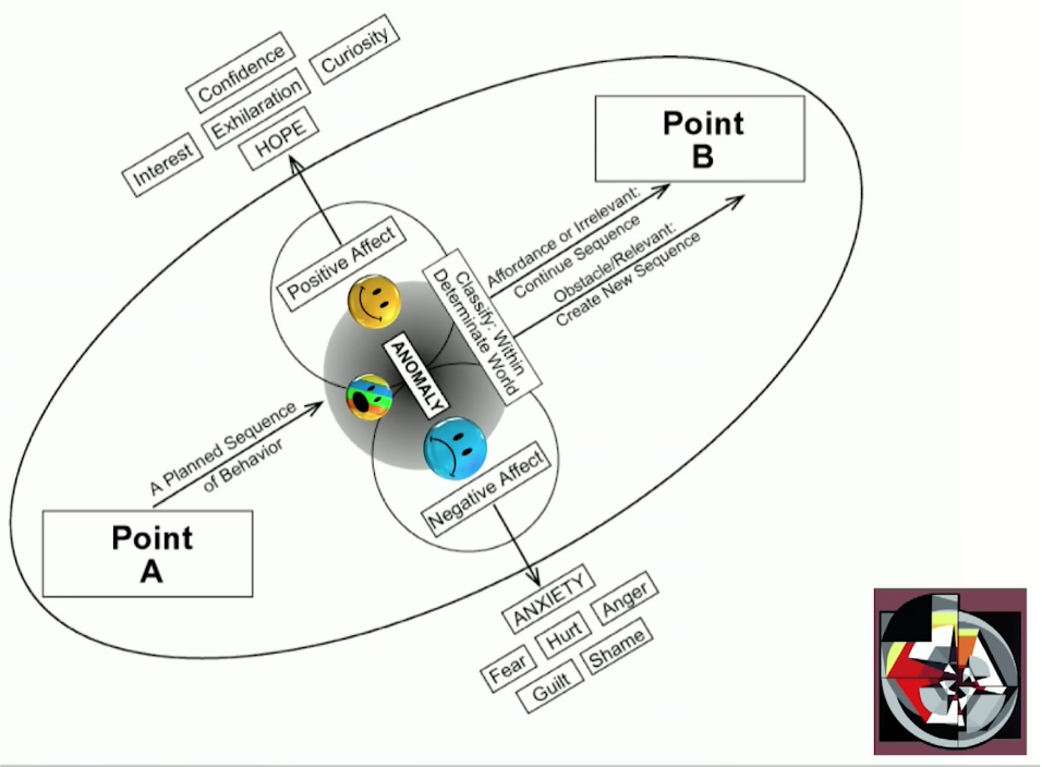 We are always moving towards an aim of some kind (from point A to point B). We react to inputs in relation to how they affect our aims (is this input an affordance, an obstacle, or irrelevant?). Indeed, this is why Nietzsche calls them “drives”. They are not primarily reactive, but rather they drive us forward towards biologically relevant aims: